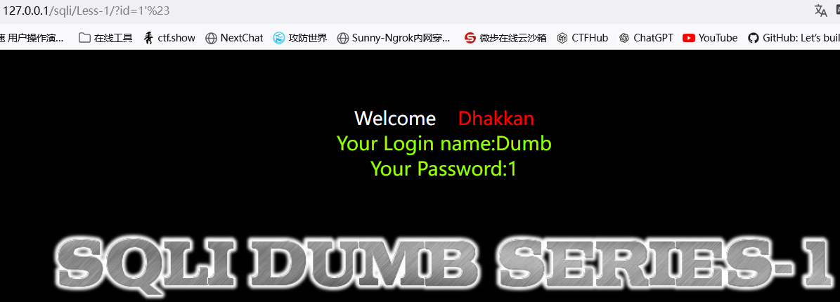 注:这里的%23就是注释符# 因为url会通过url编码将
