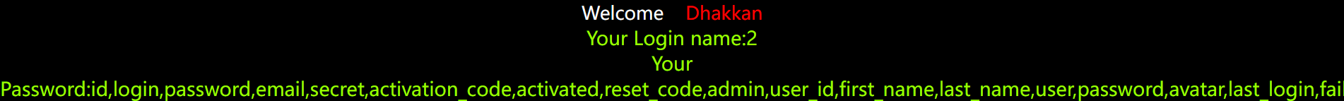 通过上述操作可以得到两个敏感字段就是username和password,接下来我们就要得到该字段对应的内容。我自己加了一个id可以隔一下账户和密码