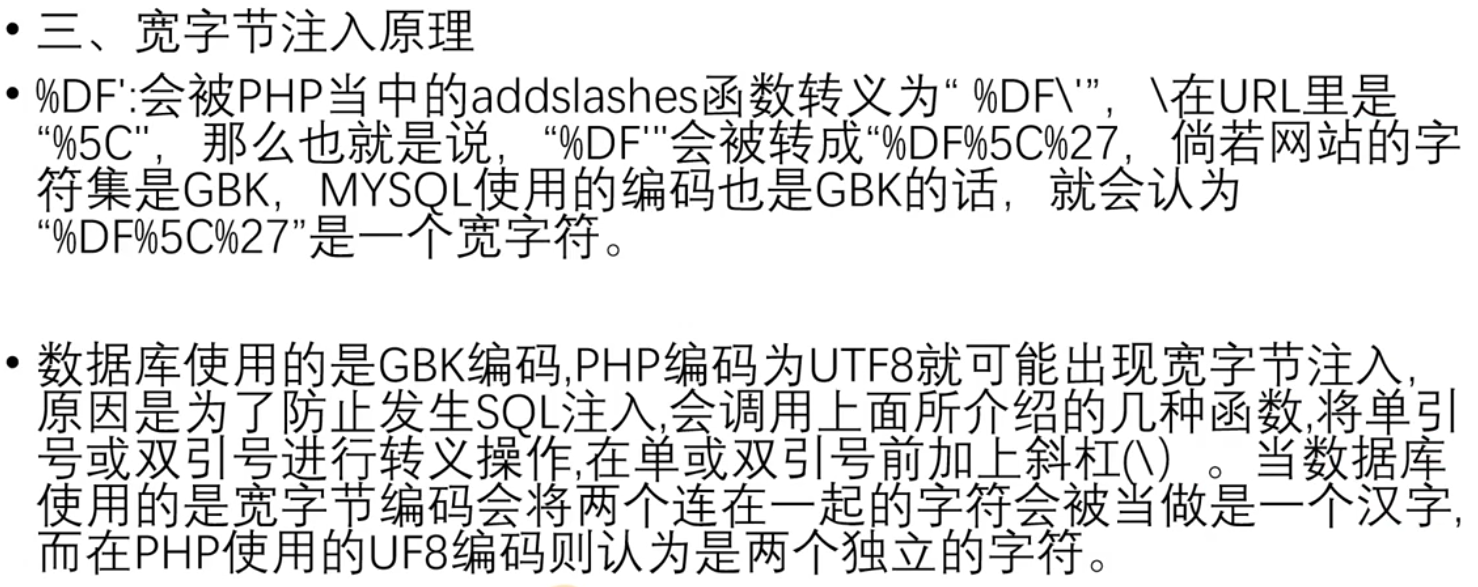 3.在编码中,gbk编码占用2个字符,asc‖占用1个字符,攻击者恶意构造,把asc字符吃掉,就能进行下一步攻击
