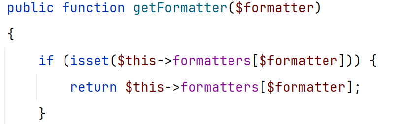 可以发现$this->formatters[$formatter]我们可以控制,然后直接return,后面的代码就没必要看了